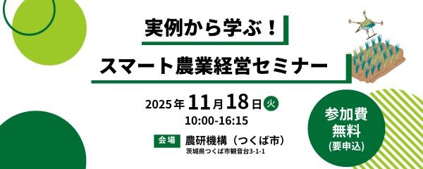 IPCSAが主催するスマート農業の研修会「実例から学ぶ! スマート農業経営セミナー」の開催が決定しました。