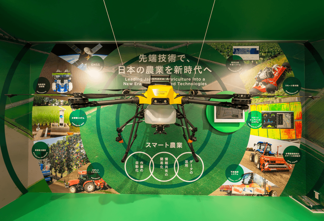 展示の中では、スマート農業に関する取組も紹介されています。特別展示エリアでは、「スマート農業」や「AI×農業」といったテーマを通じて、最新技術が農業にどのように活用されているのかを、映像や体験型展示で分かりやすく伝えています。
